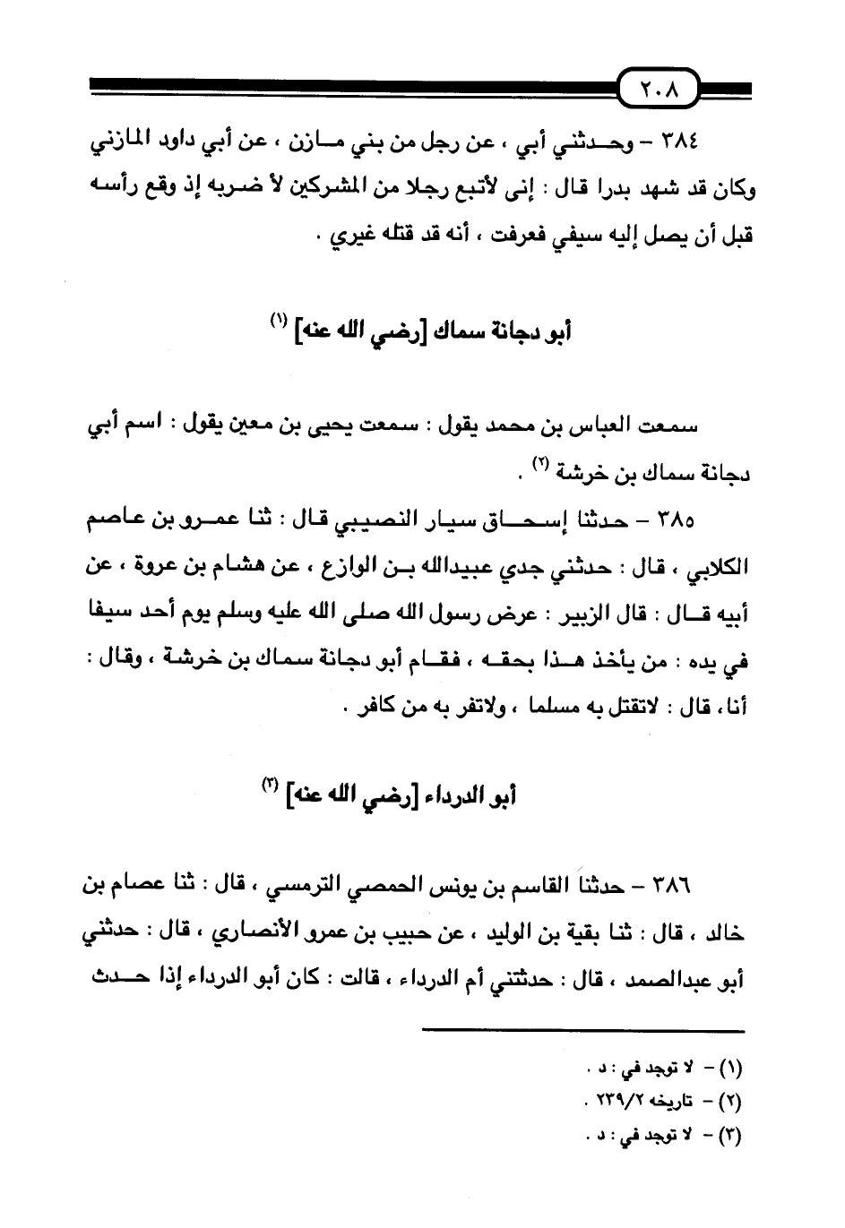 §أَبُو دُجَانَةَ سِمَاكٌ رَضِيَ اللَّهُ عَنْهُ سَمِعْتُ الْعَبَّاسَ بْنَ مُحَمَّدٍ يَقُولُ: سَمِعْتُ يَحْيَى بْنَ مَعِينٍ يَقُولُ: اسْمُ أَبِي دُجَانَةَ سِمَاكُ بْنُ خَرَشَةَ
