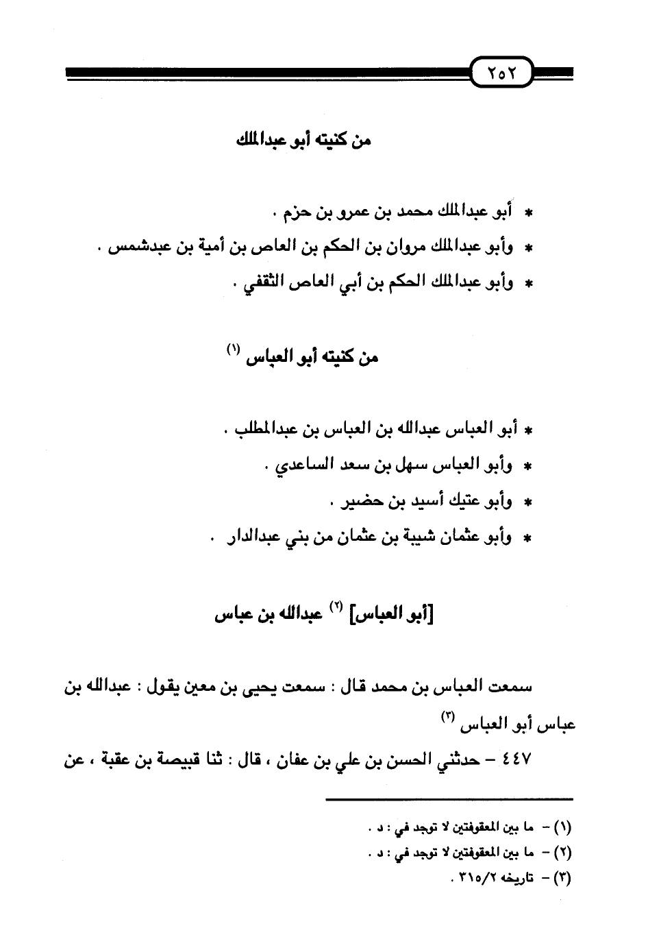 §أَبُو الْعَبَّاسِ عَبْدُ اللَّهِ بنُ عَبَّاسٍ سَمِعْتُ الْعَبَّاسَ بْنَ مُحَمَّدٍ قَالَ: سَمِعْتُ يَحْيَى بْنَ مَعِينٍ يَقُولُ: عَبْدُ اللَّهِ بْنُ عَبَّاسٍ أَبُو الْعَبَّاسِ