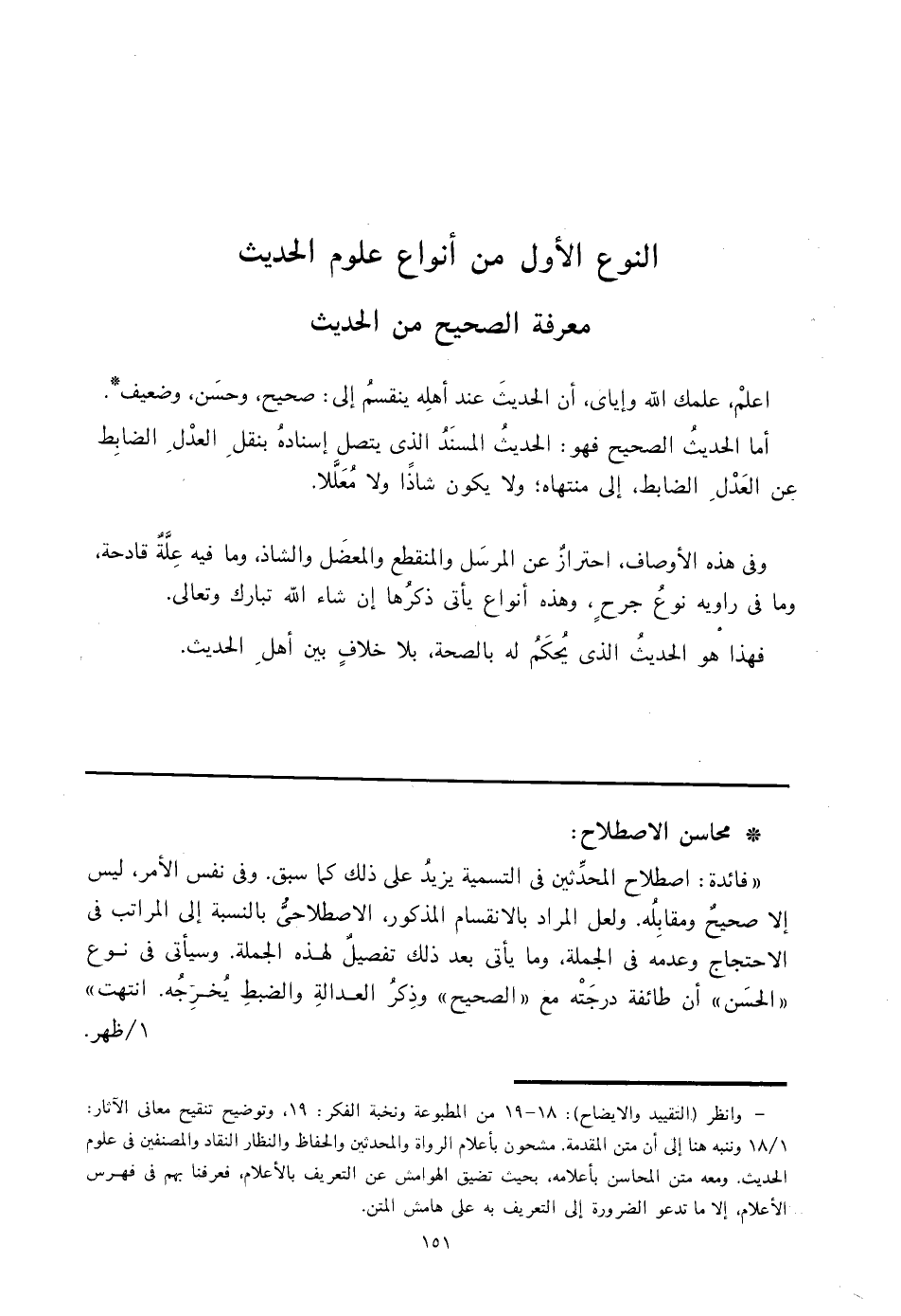 اعلمْ - علمك الله وإياي - أن الحديثَ عند أهلِه ينقسمُ: إلى صحيح، وحسَن، وضعيف *.