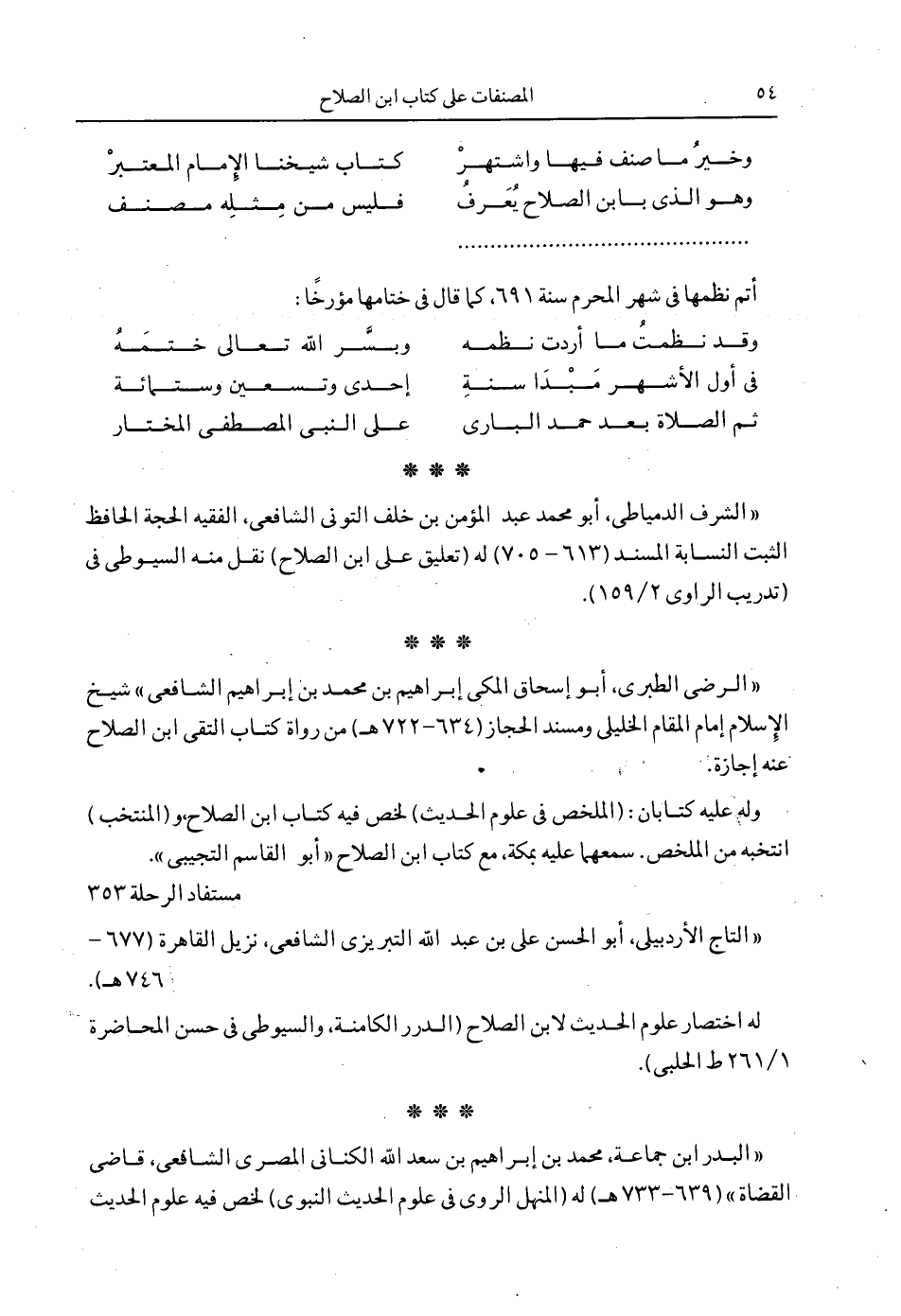 وهو الذي بابن الصلاح يُعْرفُ ............................ فليس من مِثلِه مصنف