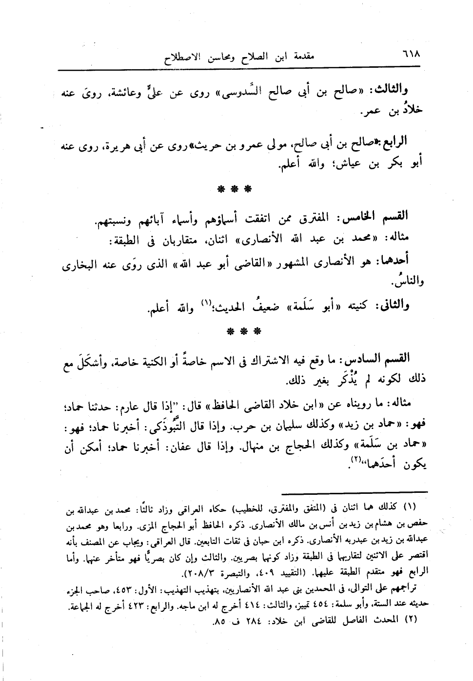 القسم السادس: ما وقع فيه الاشتراك في الاسم خاصةً أو الكنية خاصة، وأشكِلَ مع ذلك لكونه لم يُذْكَر بغير ذلك.