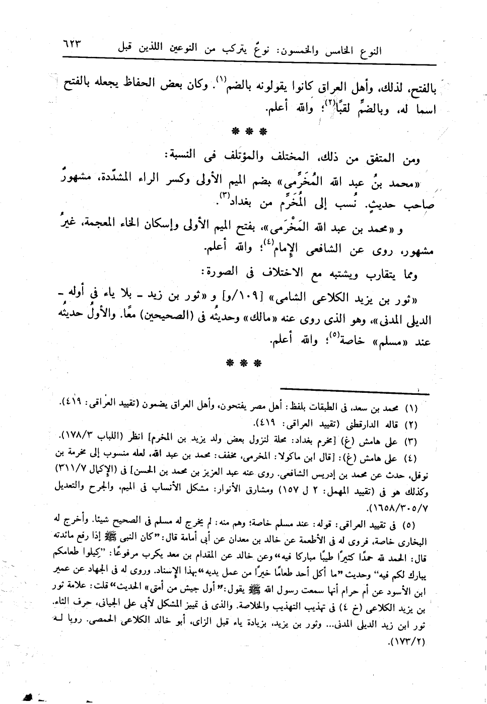 ومن المتفق من ذلك، المختلف والمؤتلف، في النسبة: