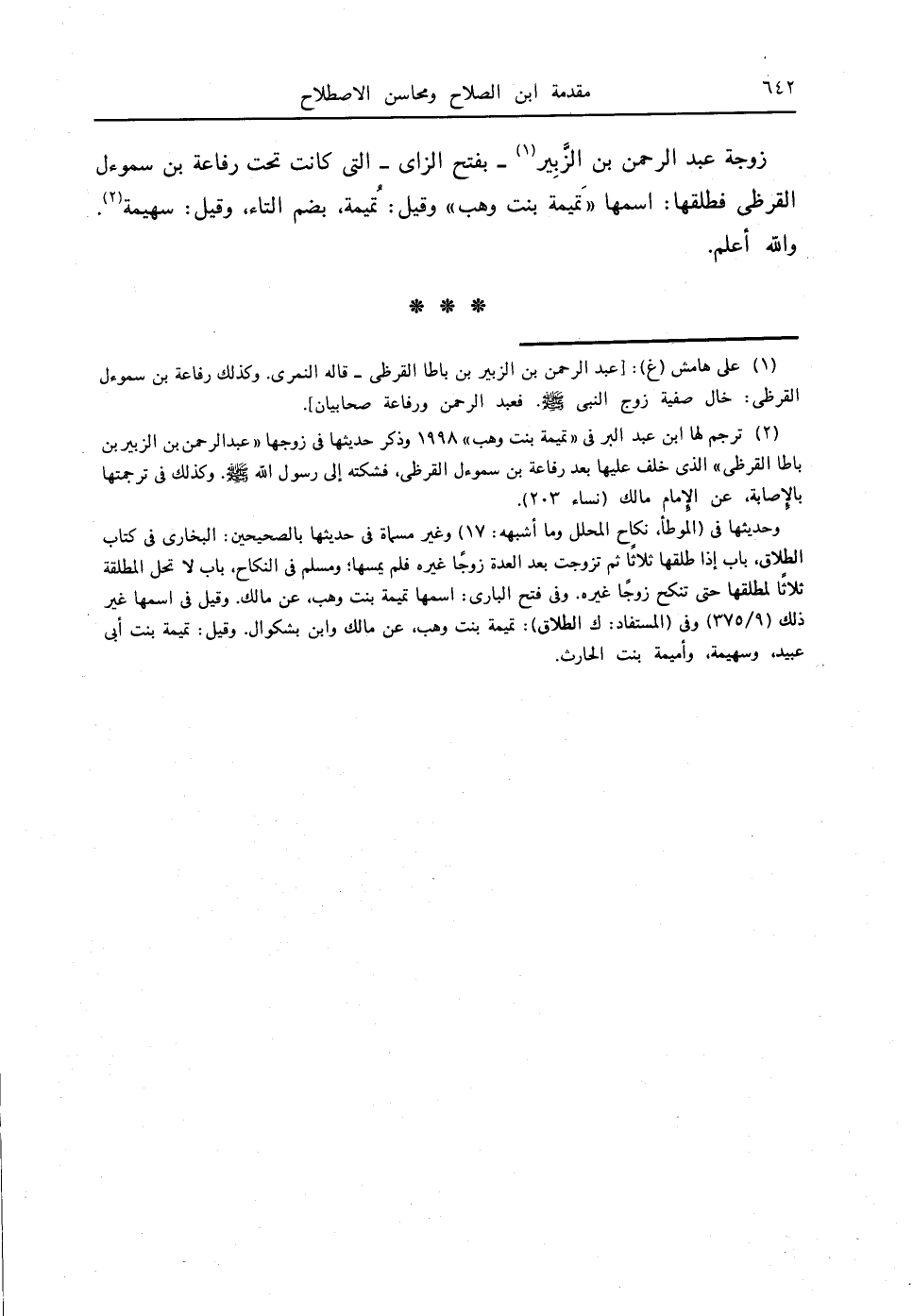 (1) على هامش (غ): [عبدالرحمن بن الزبير بن باطا القرظي - قاله النمري -. وكذلك رفاعة بن سموءل القرظي: خال صفية زوج النبي - صلى الله عليه وسلم -. فعبدالرحمن ورفاعة صحابيان].