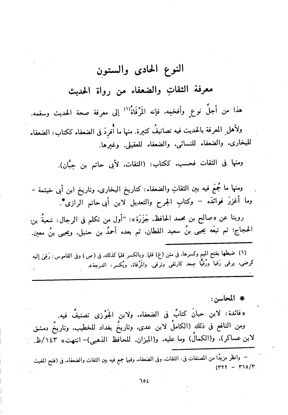 ومنها ما جُمعَ فيه بين الثقاتِ والضعفاء: كتاريخ البخاري، وتاريخ ابن أبي خيثمة - وما أغزرَ فوائده - وكتابِ الجرح والتعديل لابن أبي حاتم الرازي *.