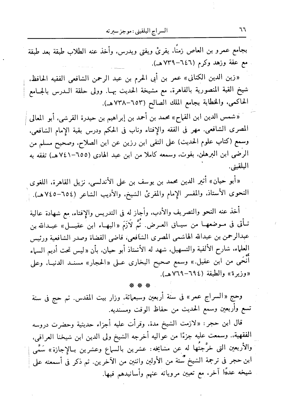 وحج " السراج عمر " في سنة أربعين وسبعمائة، وزار بيت المقدس. ثم حج في سنة تسع وأربعين وسمع الحديث من حفاظ الوقت ومسنديه.