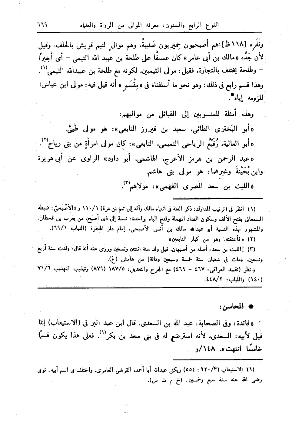 " فائدة: وفي الصحابة: عبدالله بن السعدي. قال ابن عبدالبر في (الاستيعاب) إنما قيل لأبيه: السعدي؛ لأنه استرضع له في بني سعد بن بكر (1). فعلى هذا يكون قسمًا خامسًا. انتهت " 148 / و.