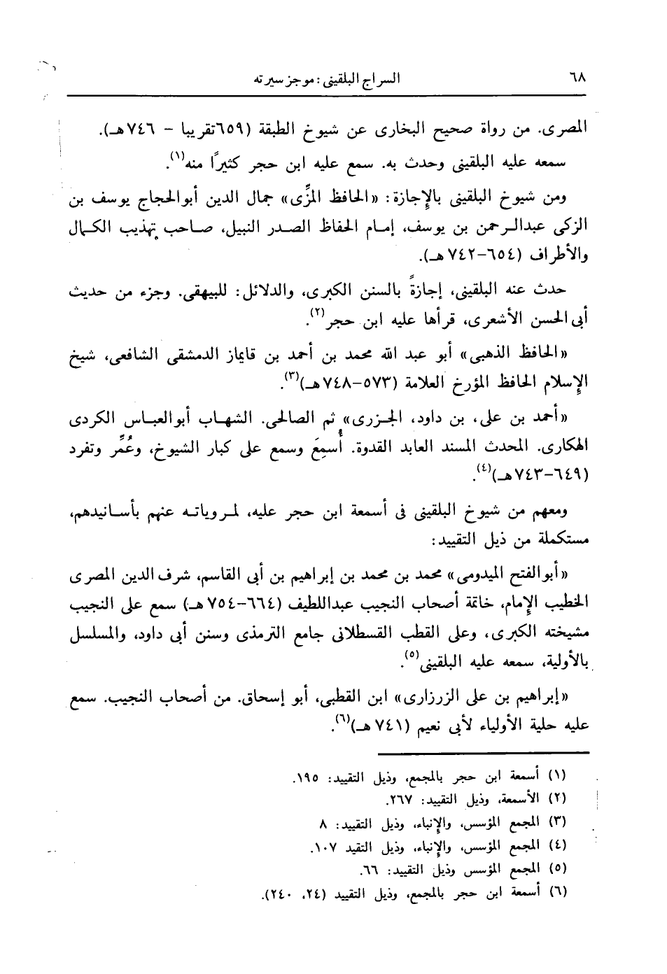 (6) أسمعة ابن حجر بالمجمع، وذيل التقييد (24، 240).