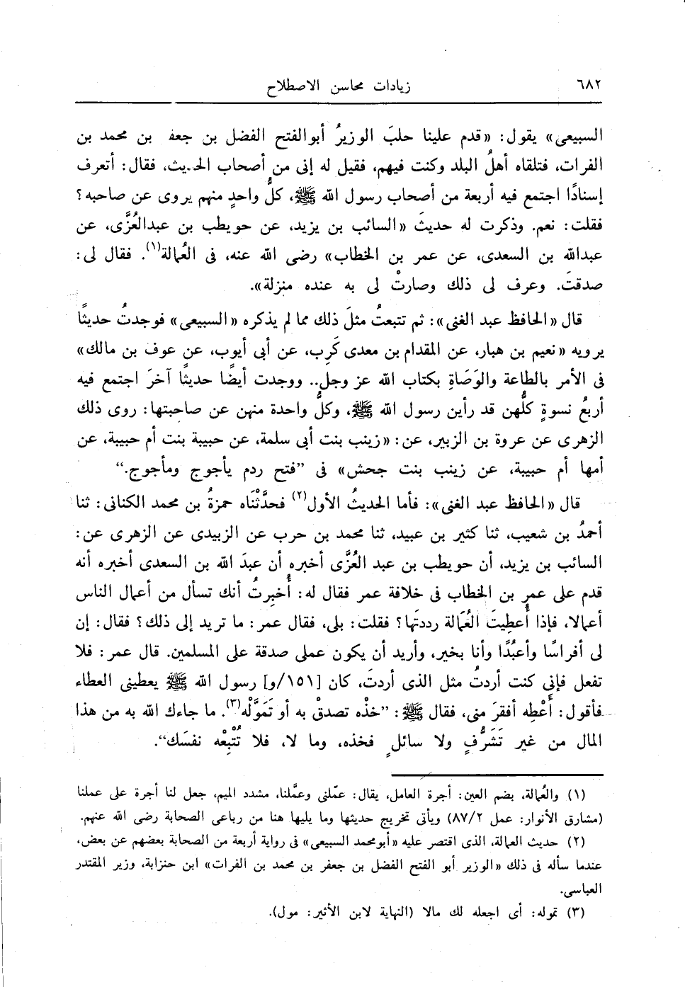 (1) والعُمالة: بضم العين: أجرة العامل، يقال: عمّلني وعمَّلنا، مشدد الجيم، جعل لنا أجرة على عملنا (مشارق الأنوار: عمل 2/ 87) ويأتي تخريج حديثها وما يليها هنا من رباعي الصحابة - رضي الله عنهم -.