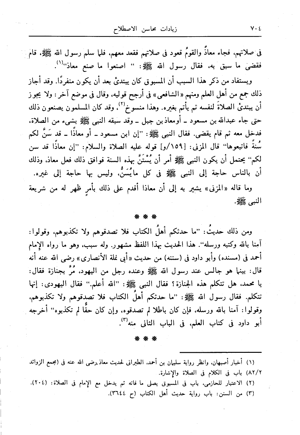 (1) أخبار أصبهان، وانظر رواية سليمان بن أحمد، الطبراني لحديث معاذ - رضي الله عنه - في (مجمع الزوائد 2/ 82) باب في الكلام في الصلاة والإشارة.
