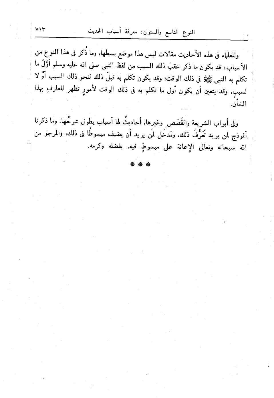 وفي أبواب الشريعة والقَصَص ِ وغيرها، أحاديثُ لها أسباب يطول شرحُها. وما ذكرنا أنموذج لمن يريد تَعَرُّفَ ذلك، ومَدخَل لمن يريد أن يضيف مبسوطًا في ذلك، والمرجو من الله - سبحانه وتعالى - الإعانة على مبسوطٍ فيه، بفضله وكرمه.