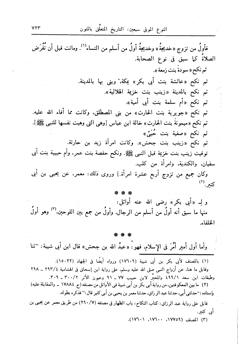 فأولُ من تزوج " خديجةُ " وخديجةُ أولُ من أسلم من النساء (1). وماتت قبل أن تُفْرَض الصلاةُ كما سبق في نوع الصحابة.