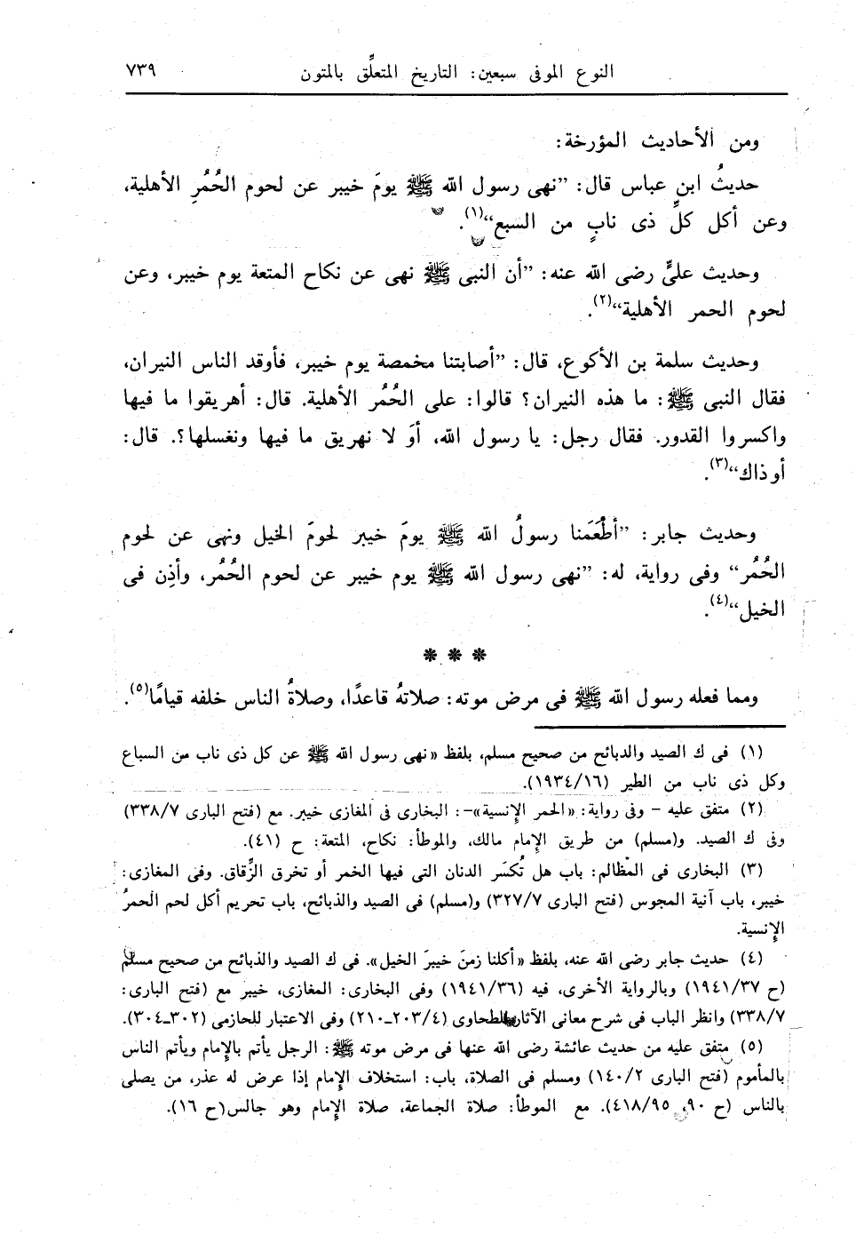 (4) حديث جابر - رضي الله عنه - بلفظ " أكلنا زمنَ خيبرَ الخيل " في ك الصيد والذبائح من صحيح مسلم (ح 37/ 1941) وبالرواية الأخرى، فيه (36/ 1941) وفي البخاري: المغازي، خيبر مع (فتح الباري: 7/ 338) وانظر الباب في شرح معاني الآثار للطحاوي (4/ 203 - 210) وفي الاعتبار للحازمي (302 - 304).
