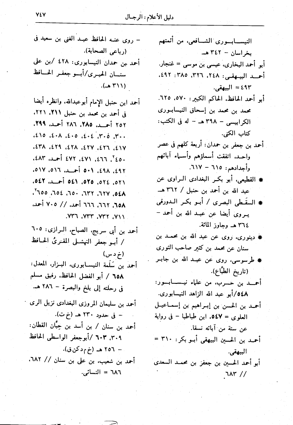 أحمد بن حمدان النيسابوري: 428 / بن علي سنان الحيري / أبو جعفر الحافظ (311 هـ).