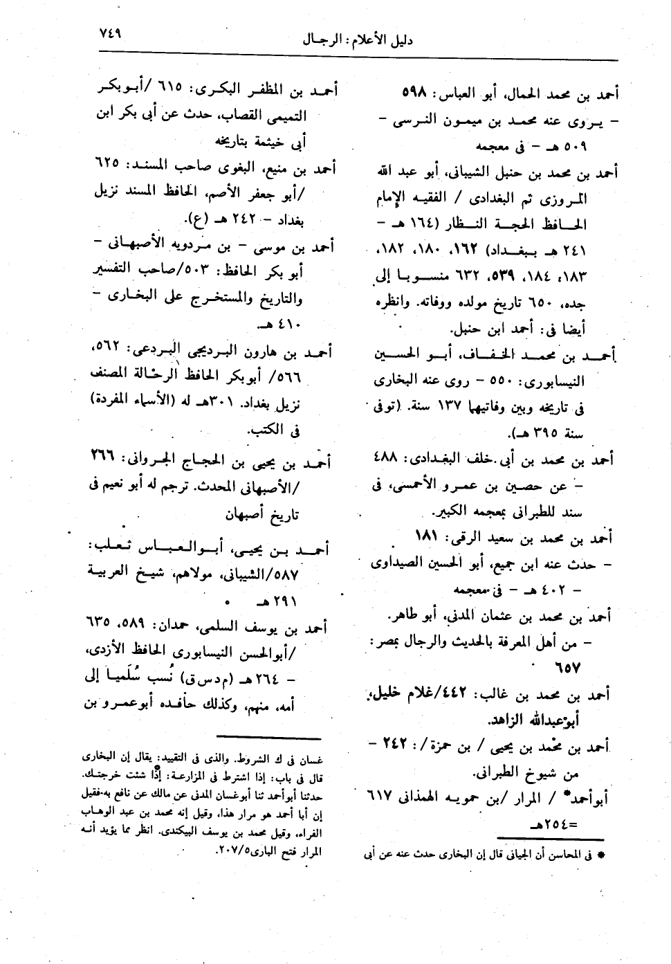 أحمد بن هارون، البرديجي البردعي: 562، 566 / أبو بكر الحفاظ الرحالة المصنف نزيل بغداد. 301 هـ له (الأسماء المفردة) في الكتب.