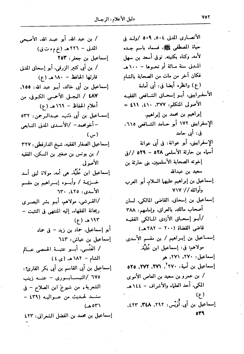 إسماعيل بن أبي خالد، أبو عبدالله: 155، 487 / البجلي الأحمسي الكوفي، من أعلام الحفاظ - 169 هـ (ع).