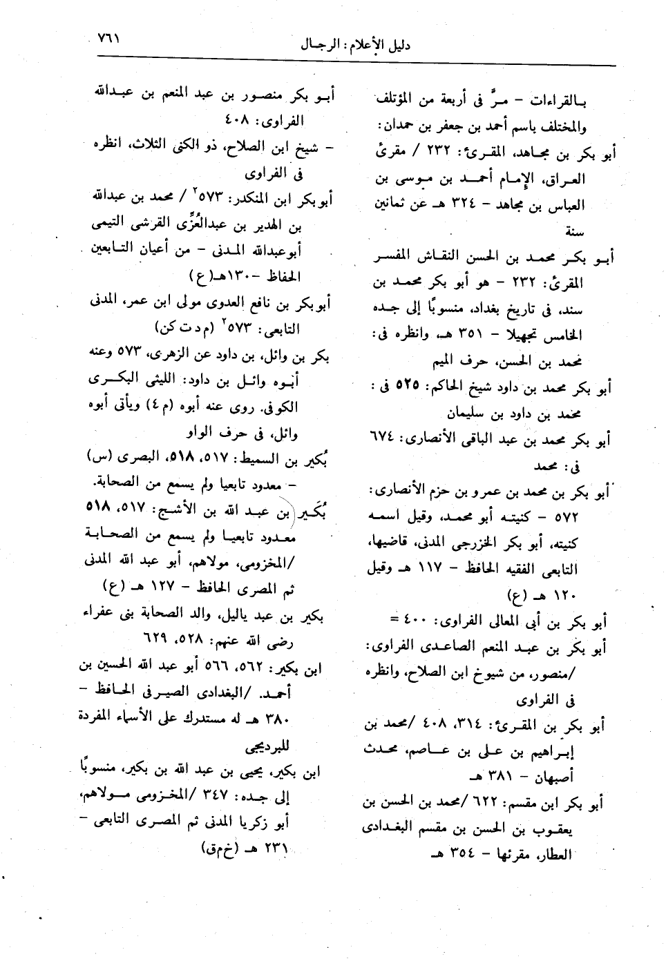 أبو بكر منصور بن عبدالمنعم بن عبدالله الفراوي: 408 - شيخ ابن الصلاح، ذو الكنى الثلاث، انظره في الفراوي.