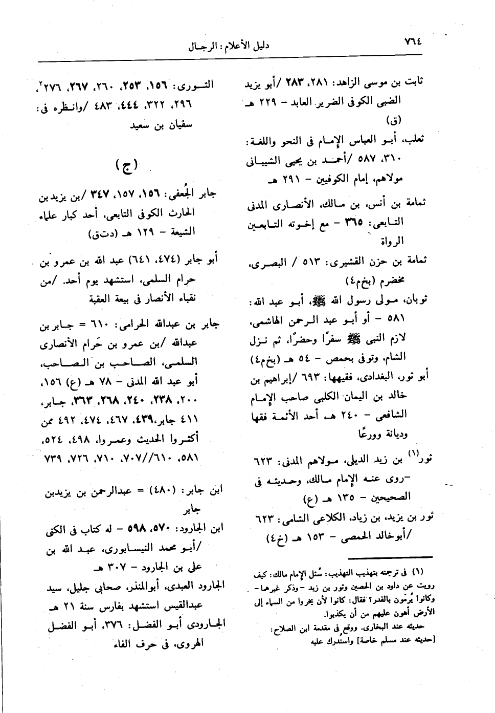 جابر بن عبدالله الحرامي: 610 = جابر بن عبدالله / بن عمرو بن حَرام الأنصاري السلمي، الصاحب بن الصاحب، أبو عبدالله المدني - 78 هـ (ع) 156، 200، 238، 240، 268، 363، جابر، 411 جابر، 439، 467، 474، 492 ممن أكثروا الحديث وعمروا، 498، 524، 581، 610 // 707، 710، 726، 739.