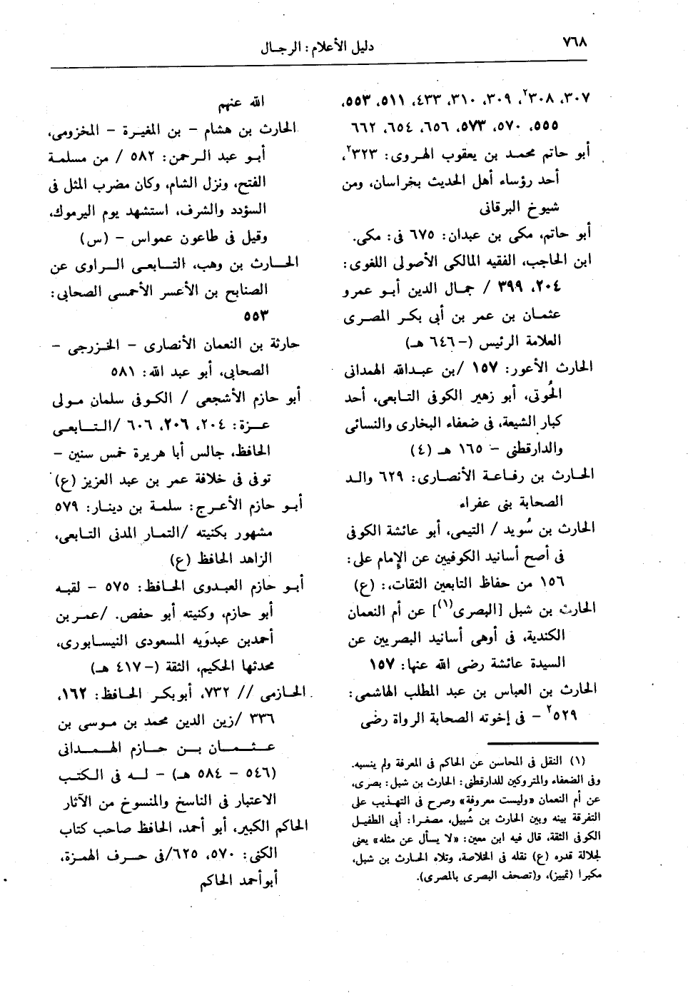 الحارث الأعور: 157 / بن عبدالله الهمداني الحُوتي، أبو زهير الكوفي التابعي، أحد كبار الشيعة، في ضعفاء البخاري والنسائي والدرقطني - 165 هـ (4).