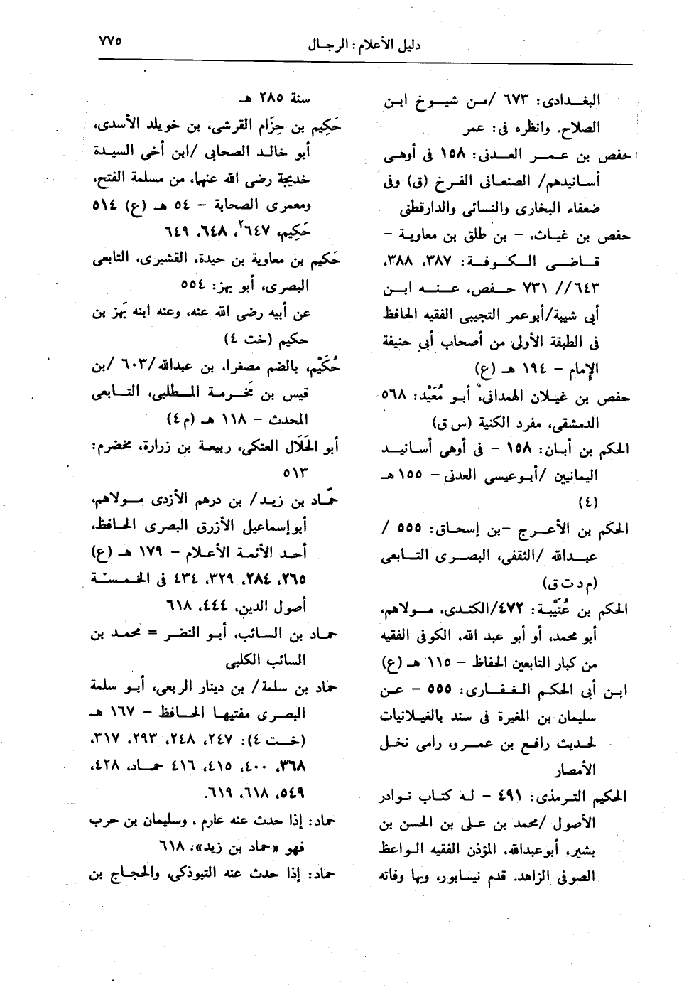 حماد بن سلمة / بن دينار الربعي، أبو سلمة البصري مفتيها الحافظ - 167 هـ (خت 4): 247، 248، 293، 317، 368، 400، 415، 416 حماد، 428، 549، 618، 619. حماد: إذا حدث عنه عارم، وسليمان بن حرب فهو: " حماد بن زيد: 618. حماد: إذا حدث عنه التبوذكي، والحجاج بن