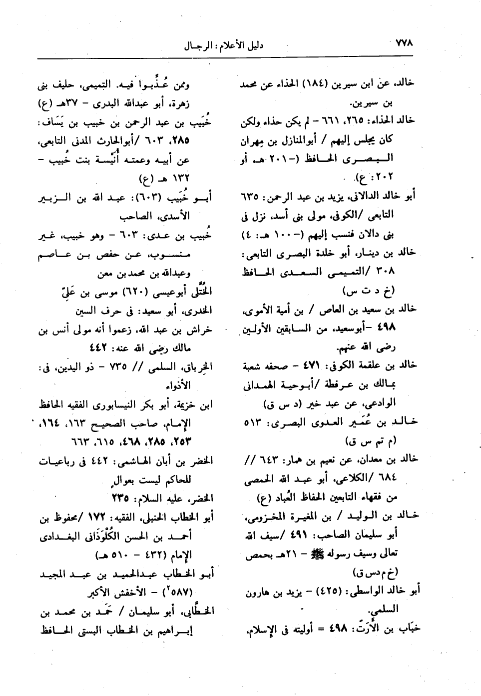 خالد الحذاء: 265، 661 - لم يكن حذاء ولكن كان يجلس إليهم / أبو المنازل بن مِهران البصري الحافظ (- 201 هـ أو 202: ع).