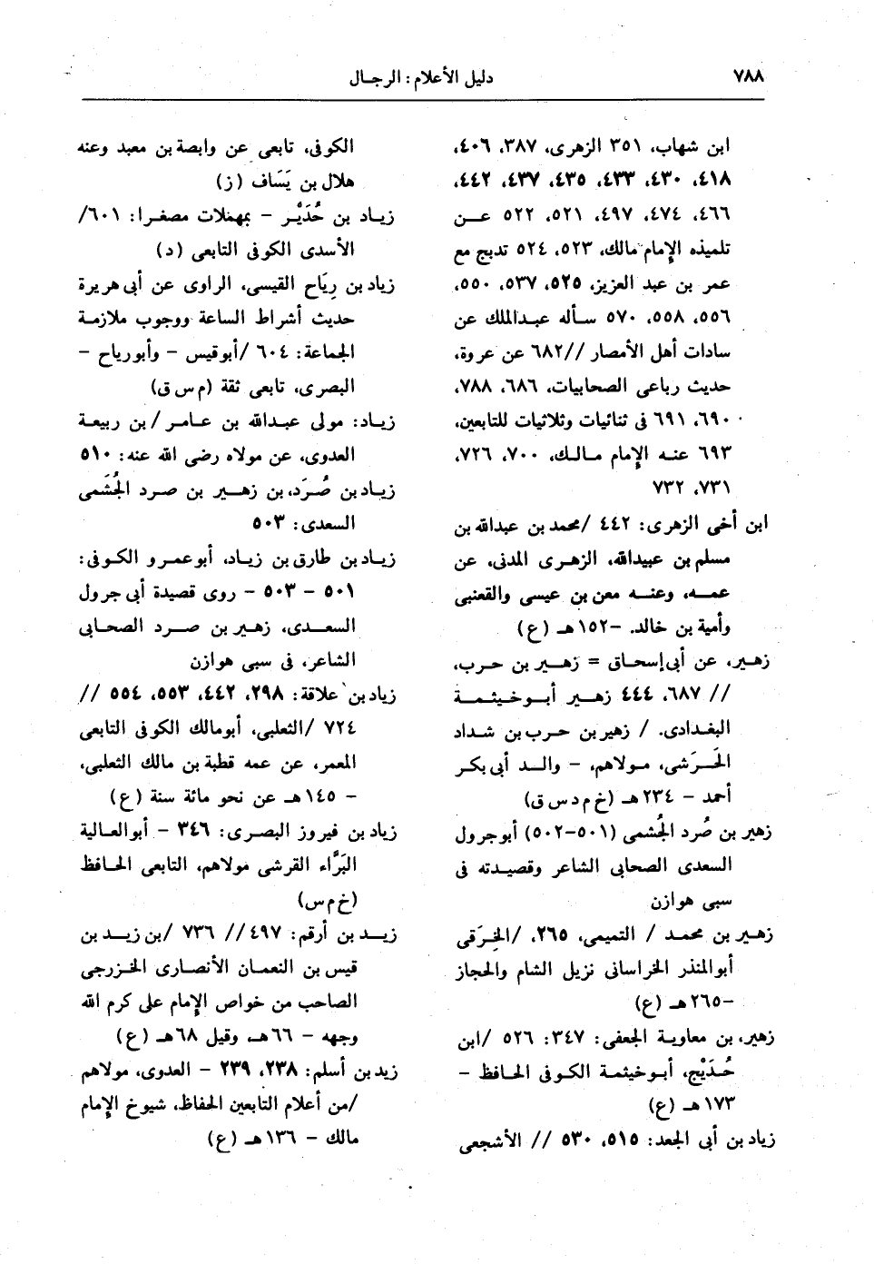 زياد بن علاقة: 298، 442، 553، 554 // 724 / الثعلبي، أبو مالك الكوفي التابعي المعمر، عن عمه قطبة بن مالك الثعلبي، - 145 هـ عن نحو مائة سنة (ع).