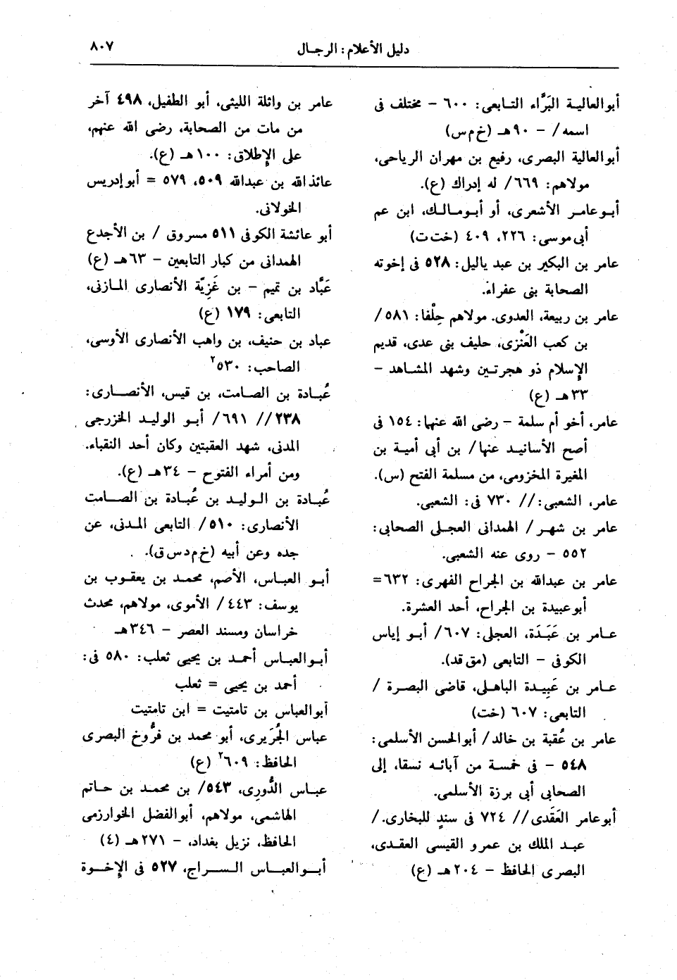 عامر بن ربيعة، العدوي، مولاهم حِلْفا: 581 / بن كعب العَنْزي، حليف بني عدي، قديم الإسلام ذو هجرتين وشهد المشاهد - 33 هـ (ع).