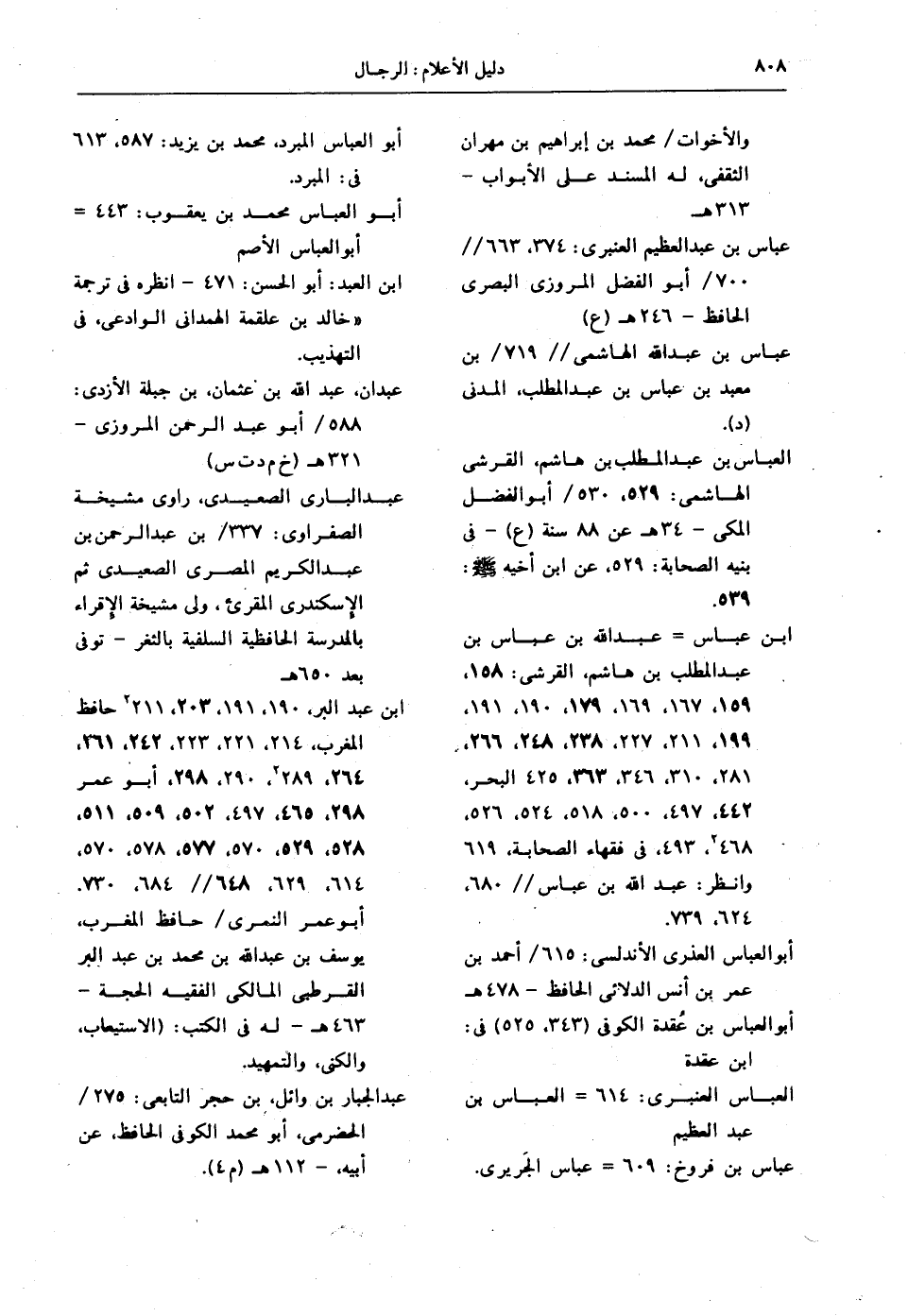 العباس بن عبدالمطلب بن هاشم، القرشي الهاشمي: 529، 530 / أبو الفضل المكي - 34 هـ عن 88 سنة (ع) - في بنيه الصحابة: 529، عن ابن أخيه - صلى الله عليه وسلم -: 529.
