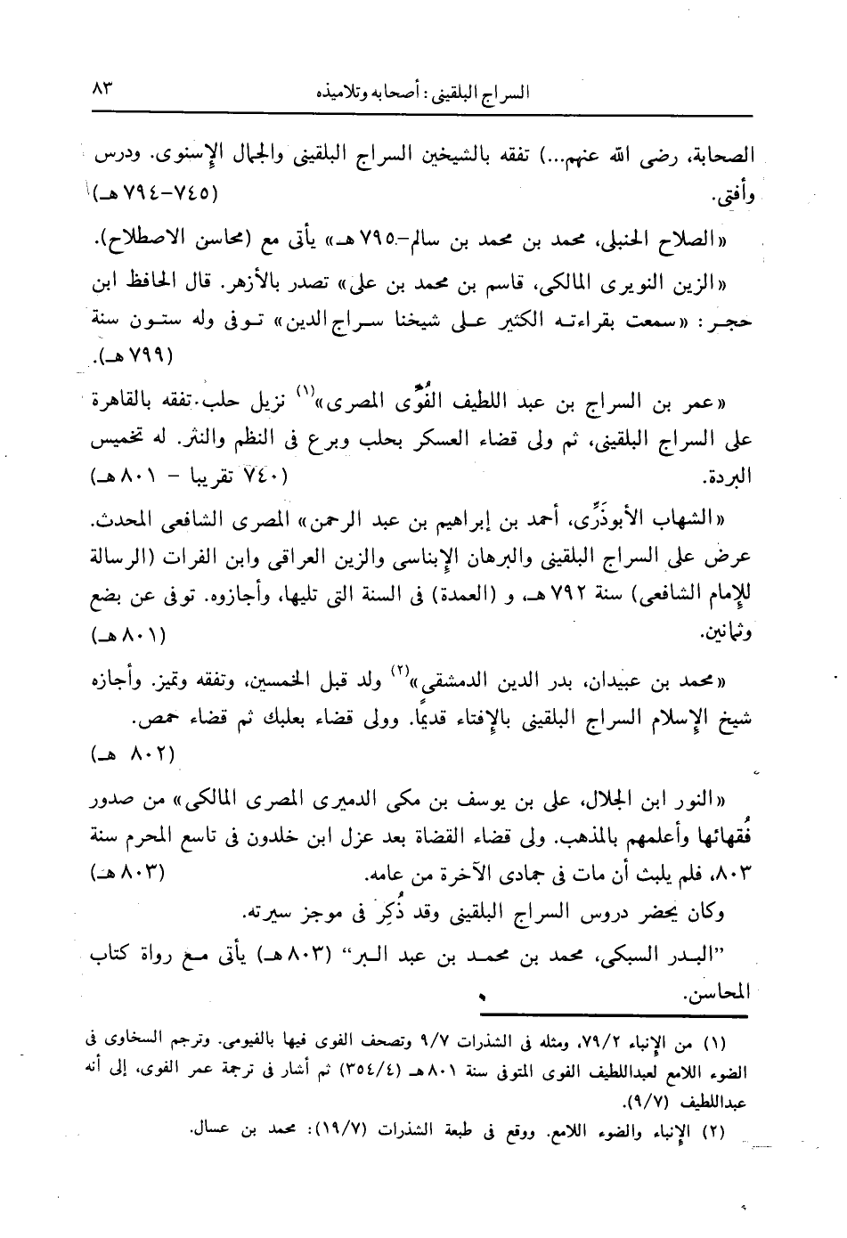 " الصلاح الخليلي، محمد بن محمد بن سالم (795 هـ) " يأتي مع (محاسن الاصطلاح).