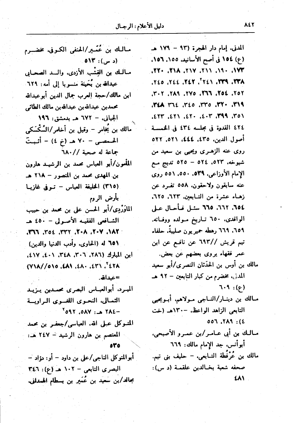المدني، إمام دار الهجرة (93 - 179 هـ) (ع) 154 في أصح الأسانيد، 155، 156، 173، 190، 211، 217، 218، 220، 238، 239، 241 ²، 242، 244، 245، 252، 254، 266، 275، 289، 302، 319، 320، 335، 345، 364، 348، 351، 399، 403، 420، 421، 423، 424 القدوة في مجلسه 434 في الخمسة أصول الدين، 435، 444، 521، 522 روى عنه الزهري ويحيى بن سعيد من شيوخه، 523، 524 - 525 تدبج مع الإمام الأوزاعي، 539، 550، 551 روى عنه سابقون ولاحقون، 558 تفرد عن زهاء عشرة من التابعين، 623، 625، 654، 662، 665 سئل فأحال على الواقدي، 650 تاريخ مولده ووفاته. 659، 669 رهطه حميريون صليبةً، حلفاء تيم قريش // 693 عن نافع عن ابن عمر فقهاء يروي بعضهم عن بعض.