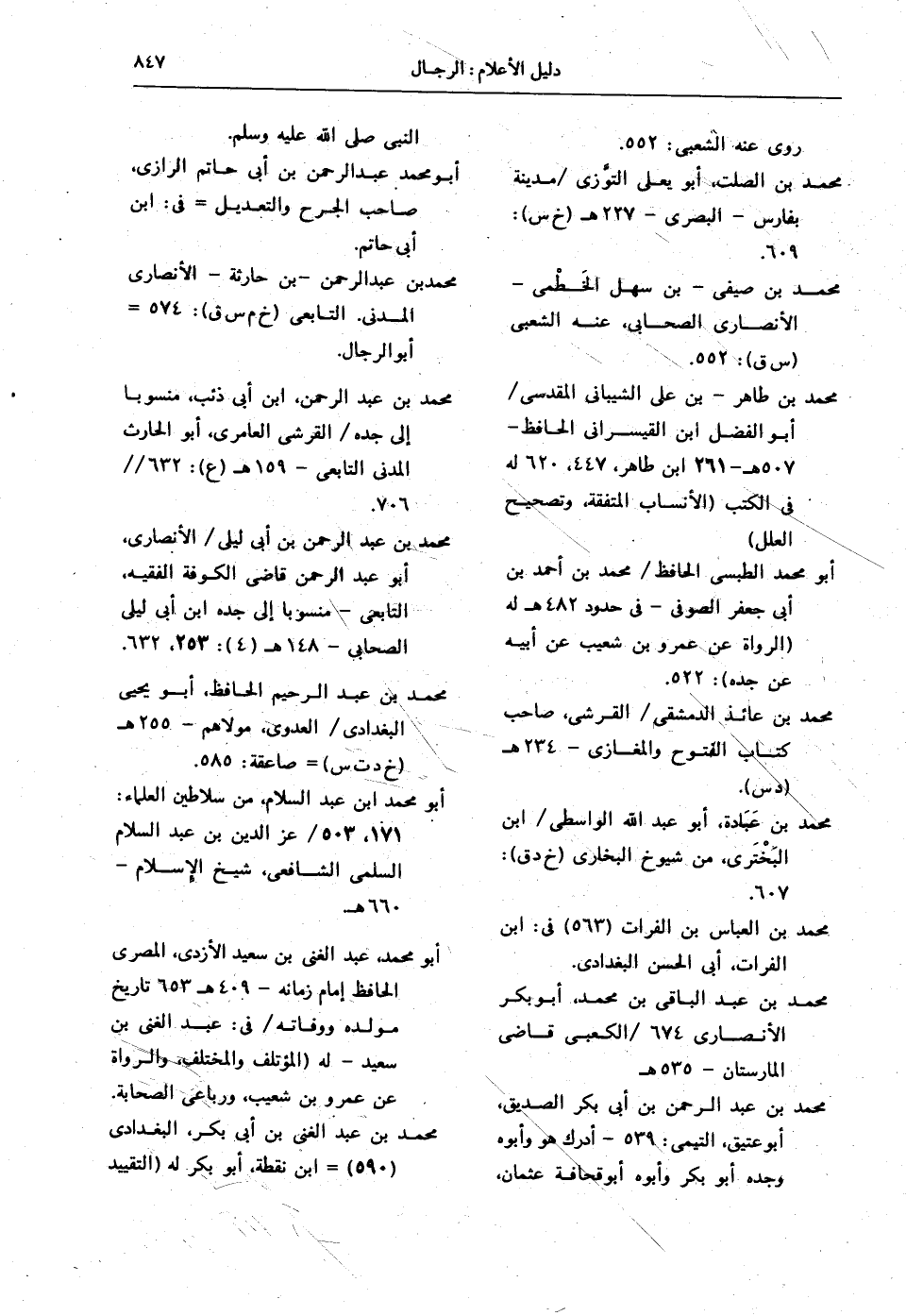 محمد بن طاهر - بن علي الشيباني المقدسي / أبو الفضل ابن القيسراني الحافظ - 507 هـ - 261 ابن طاهر، 447، 620 له في الكتب (الأنساب المتفقة، وتصحيح العلل).