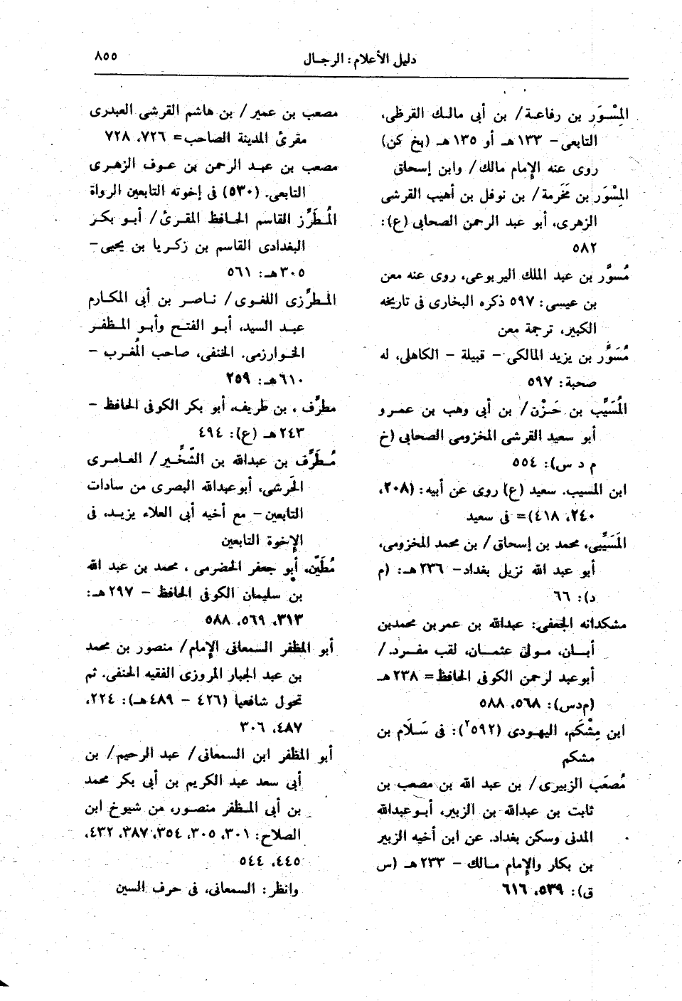 مُصعَب الزبيري / بن عبدالله بن مصعب بن ثابت بن عبدالله بن الزبير، أبو عبدالله المدني وسكن بغداد. عن ابن أخيه الزبير بن بكار والإامم مالك - 233 هـ (س ق): 539، 616.