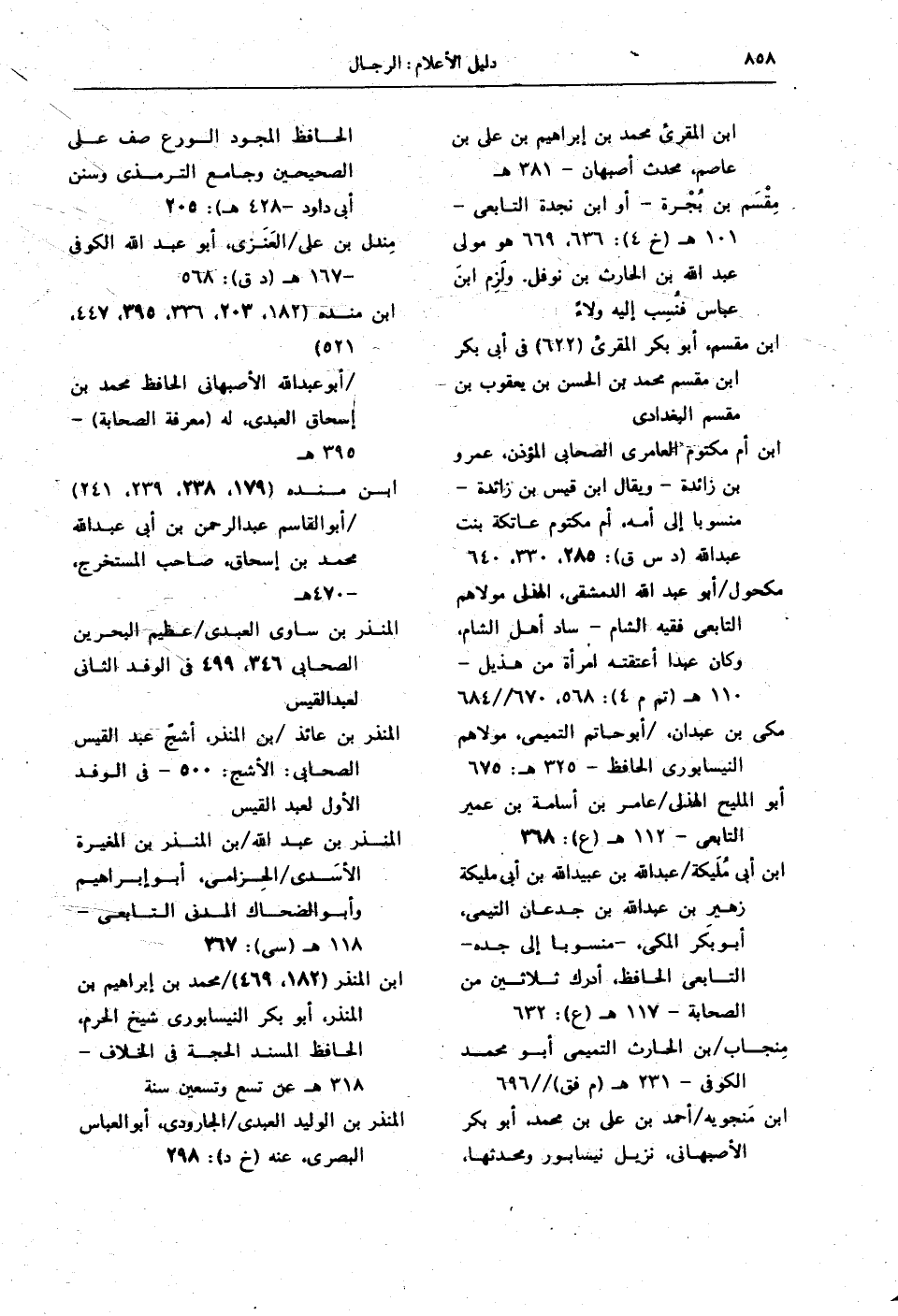 ابن منده (182، 203، 336، 395، 447، 521). / أبو عبدالله الأصبهاني الحافظ محمد بن إسحاق العبدي، له (معرفة الصحابة) - 395 هـ.