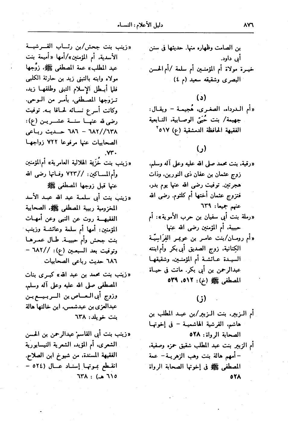 " زينب بنت محمد بن عبدالله " كبرى بنات المصطفى - صلى الله عليه وعلى آله وسلم -، وزوج أبي العاص بن الربيع بن عبدالعزى بن عبدشمس، ابن خالتها هالة بنت خويلد: 638.
