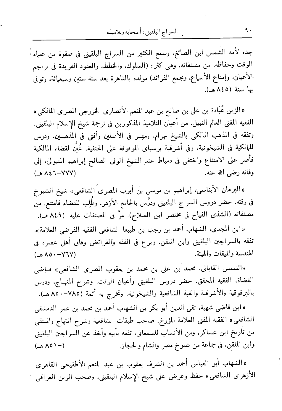 " الشهاب أبو العباس أحمد بن الشرف يعقوب بن عبدالمنعم الأطفيحي القاهري الأزهري الشافعي " حفظ وعرض على شيخ الإِسلام البلقيني، وصحب الزين العراقي