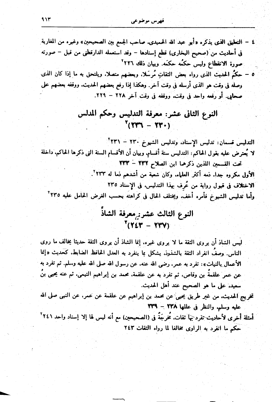 4 - التعليق الذي يذكره " أبو عبدالله الحميدي، صاحب الجمع البين الصحيحين " وغيره من المغاربة في أحاديث من (صحيح البخاري) قطع إسنادها - وقد استعمله الدارقطني من قبل - صورته صورة الانقطاع وليس حكمُه حكمَه. وبيان ذلك 226 2.