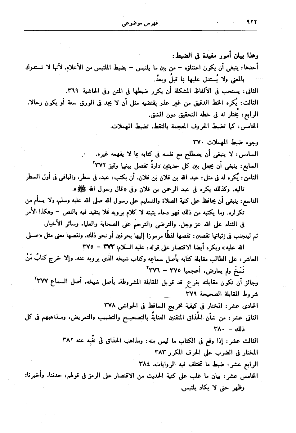 الرابع عشر: ضبط ما تختلف فيه الروايات، 384.