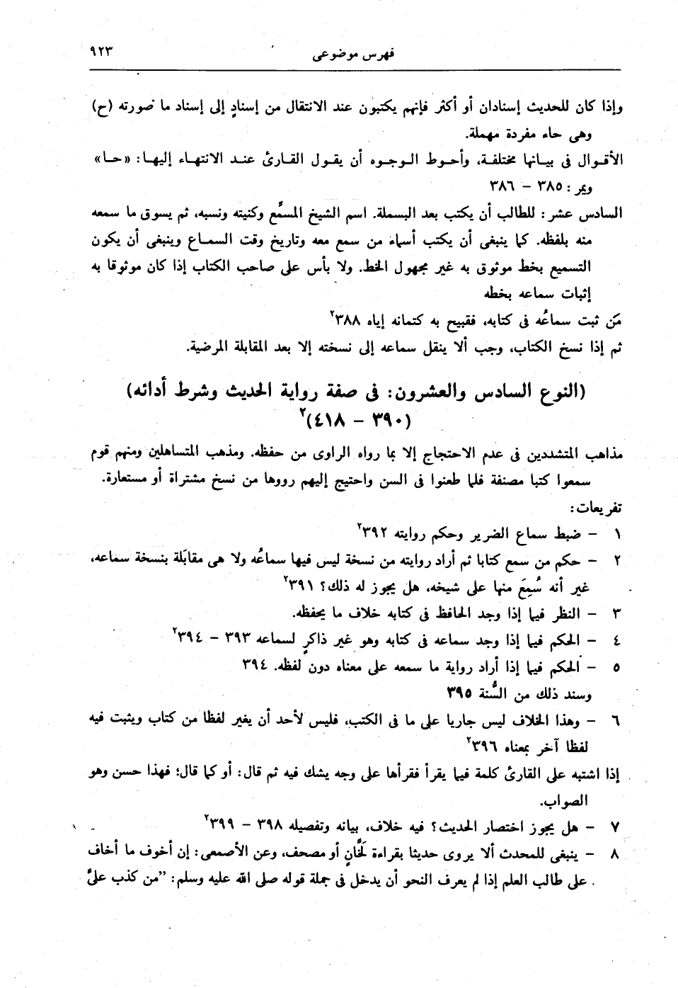5 - الحكم فيما إذا أراد رواية ما سمعه على معناه دون لفظه. 394.