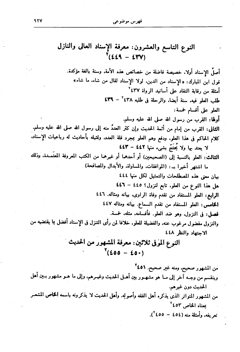 من المشهور المتواتر الذي يذكره أهل الفقه وأصولِه. وأهل الحديث لا يذكرونه باسمه الخاص المشعر بمعناه الخاص 453 2.
