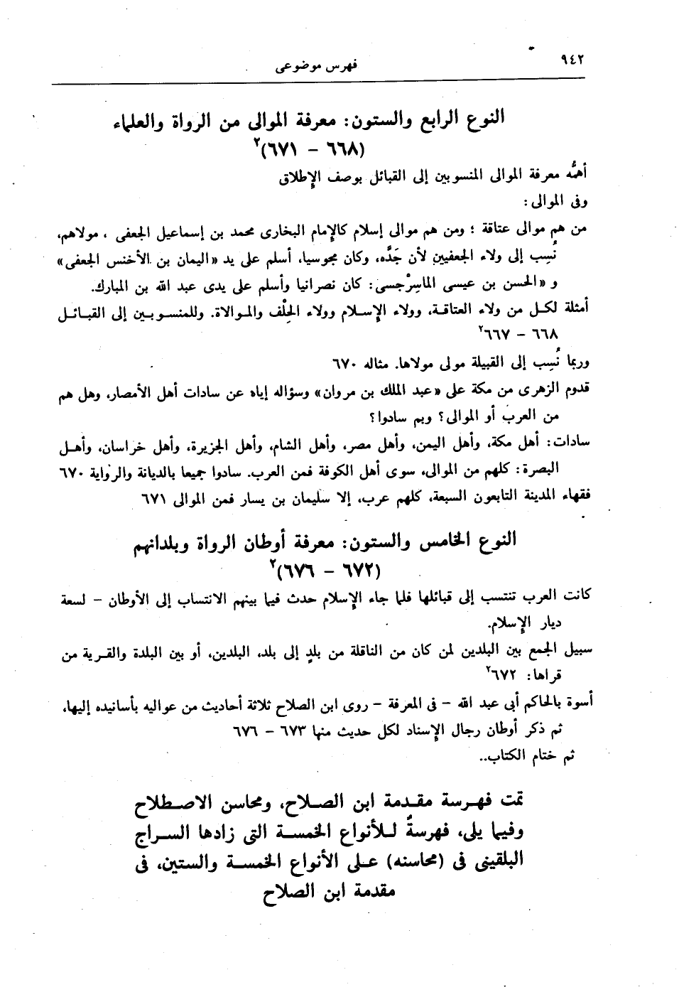 تمت فهرسة مقدمة ابن الصلاح، ومحاسن الاصطلاح، وفيما يلي: فهرسةٌ للأنواع الخمسة التي زادها السراج البلقيني في (محاسنه) على الأنواع الخمسة والستين، في مقدمة ابن الصلاح.