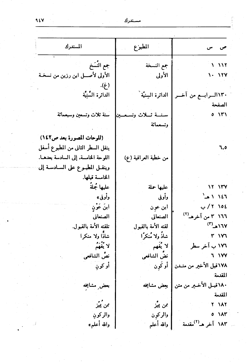 ص ...... س .................................. المطبوع ................................ المستدرك