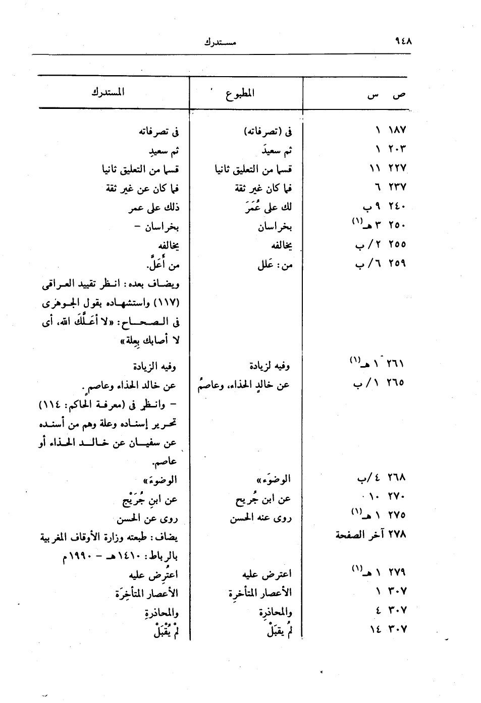 ص ...... س .................................. المطبوع ................................ المستدرك