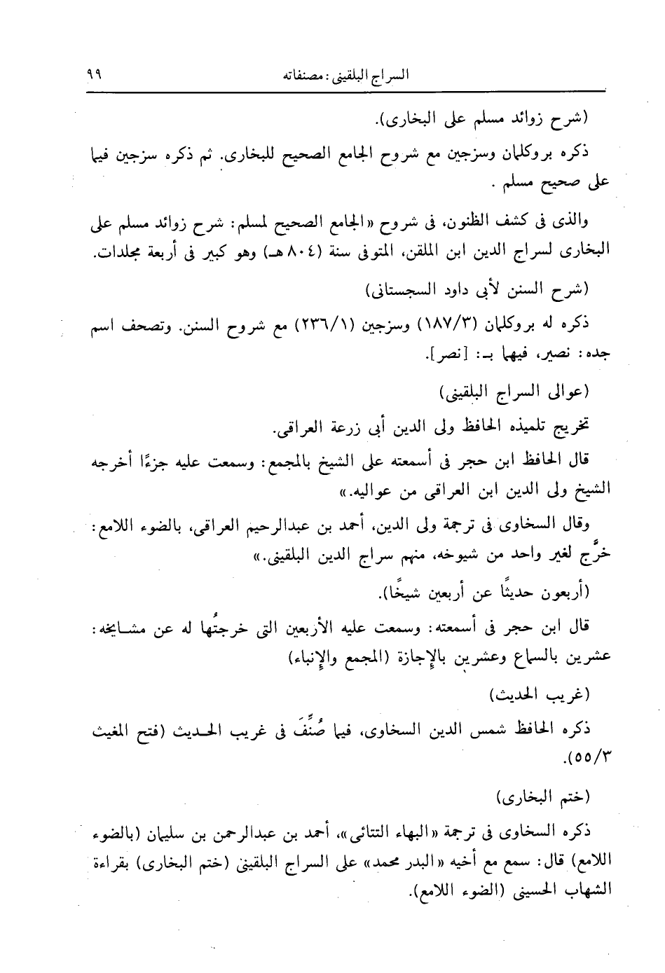 وقال السخاوي في ترجمة ولي الدين، أحمد بن عبدالرحيم العراقي، بالضوء اللامع: خرَّج لغير واحد من شيوخه، منهم سراج الدين البلقيني ".