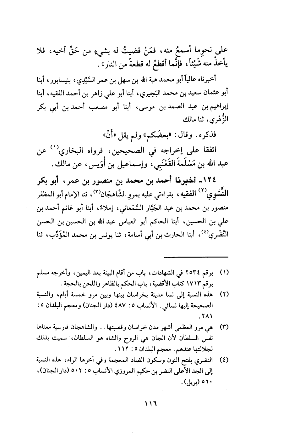 124- أخبرنا أحمد بن محمد بن منصور بن عمر أبو بكر النسوي الفقيه بقراءتي عليه بمرو الشاهجان ثنا الإمام أبو المظفر منصور بن محمد بن عبد الجبار السمعاني إملاء أبنا أبو غانم أحمد بن علي بن الحسين أبنا الحاكم أبو العباس عبد الله بن الحسين بن الحسن النضري أبنا الحارث بن أبي أسامة ثنا يونس بن محمد المؤدب ثنا -[117]- الليث هو ابن سعد عن أبي الزبير عن جابر عن النبي صلى الله عليه وسلم قال عرض علي الأنبياء فإذا موسى رجل ضرب من الرجال كأنه من رجال شنوءة ورأيت عيسى بن مريم فإذا أقرب من رأيت به شبها عروة بن مسعود ورأيت إبراهيم فإذا أقرب من رأيت به شبها صاحبكم يعني نفسه ورأيت جبريل عليه السلام فإذا أقرب من رأيت به شبها دحية. أخبرناه عاليا الحسين بن عبد الملك الحسين الخلال وغانم بن خالد بن عبد الواحد التاجر بأصبهان قالا أبنا أبو الطيب عبد الرزاق بن عمر بن شمة أبنا محمد بن علي بن إبراهيم بن المقرئ قال ثنا علان علي بن أحمد الصيقل المعدل ثنا محمد بن رمح أبنا الليث عن أبي الزبير عن جابر عن رسول الله صلى الله عليه وسلم أنه قال عرض علي الأنبياء فإذا موسى صلى الله عليه وسلم ضرب من الرجال.. فذكر مثله ولم يقل ابن مريم وقال دحية بن خليفة.