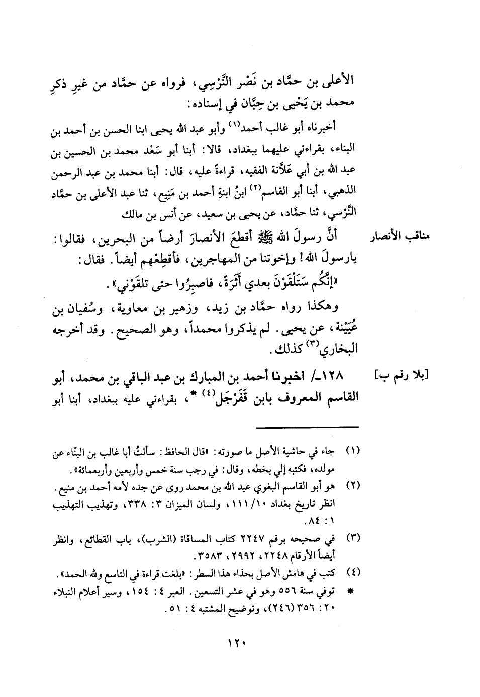 128- أخبرنا أحمد بن المبارك بن عبد الباقي بن محمد أبو القاسم المعروف بابن قفرجل بقراءتي عليه ببغداد أبنا أبو -[121]- الفوارس طراد بن محمد علي الزينبي قراءة عليه أبنا محمد بن أحمد بن محمد بن أحمد بن رزقويه أبنا محمد بن يحيى بن عمر بن علي بن حرب ثنا علي بن حرب بن محمد الطائي ثنا سفيان بن عيينة عن الزهري عن سعيد عن أبي هريرة أن النبي صلى الله عليه وسلم قال لا تناجشوا ولا يبيع حاضر لباد ولا يبيع الرجل على بيع أخيه ولا يخطب على خطبة أخيه ولا تسأل المرأة طلاق أختها لتكتفئ ما في إنائها.