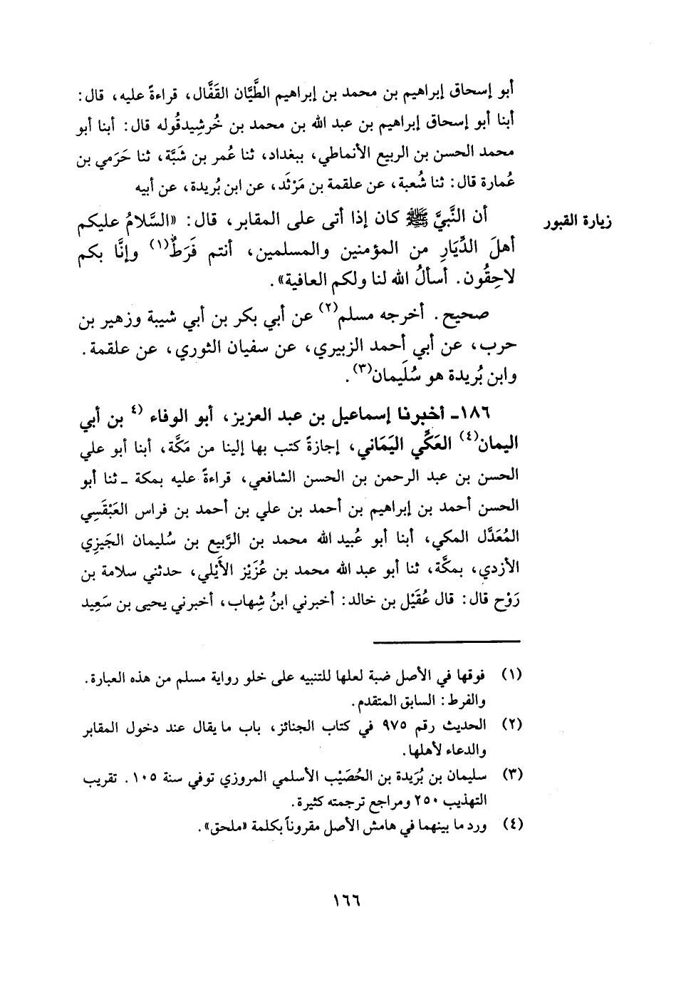 186- أخبرنا إسماعيل بن عبد العزيز أبو الوفاء بن أبي اليمان العكي اليماني إجازة كتب بها إلينا من مكة أبنا أبو علي الحسن بن عبد الرحمن بن الحسن الشافعي قراءة عليه بمكة ثنا أبو الحسن أحمد بن إبراهيم بن أحمد بن علي بن أحمد بن فراس العبقسي المعدل المكي أبنا أبو عبيد الله محمد بن الربيع بن سليمان الجيزي الأزدي بمكة ثنا أبو عبد الله محمد بن عزيز الأيلي حدثني سلامة بن روح قال قال عقيل بن خالد أخبرني ابن شهاب أخبرني يحيى بن سعيد -[167]- بن العاص أن سعيد بن العاص أخبره أن عائشة زوج النبي وعثمان حدثاه أن أبا بكر استأذن على رسول الله صلى الله عليه وسلم وهو مضطجع على فراشه لابس مرط عائشة فأذن لأبي بكر وهو كذلك فقضى أبو بكر رضي الله عنه حاجته ثم انصرف ثم استأذن عمر بن الخطاب وهو على تلك الحال فقضى إليه حاجته ثم انصرف قال عثمان ثم استأذنت فجلس رسول الله صلى الله عليه وسلم فجمع عليه ثيابه ثم قضيت إليه حاجتي ثم انصرفت قال فقالت عائشة يا رسول الله مالك لا تفزع لأبي بكر وعمر كما فزعت لعثمان فقال إن عثمان رجل حيي وإني خشيت أني لو أذنت له وأنا على حالتي تلك أن لا يبلغ إلى حاجته. صحيح أخرجه مسلم عن عبد الملك بن شعيب عن الليث عن أبيه عن جده عن عقيل.