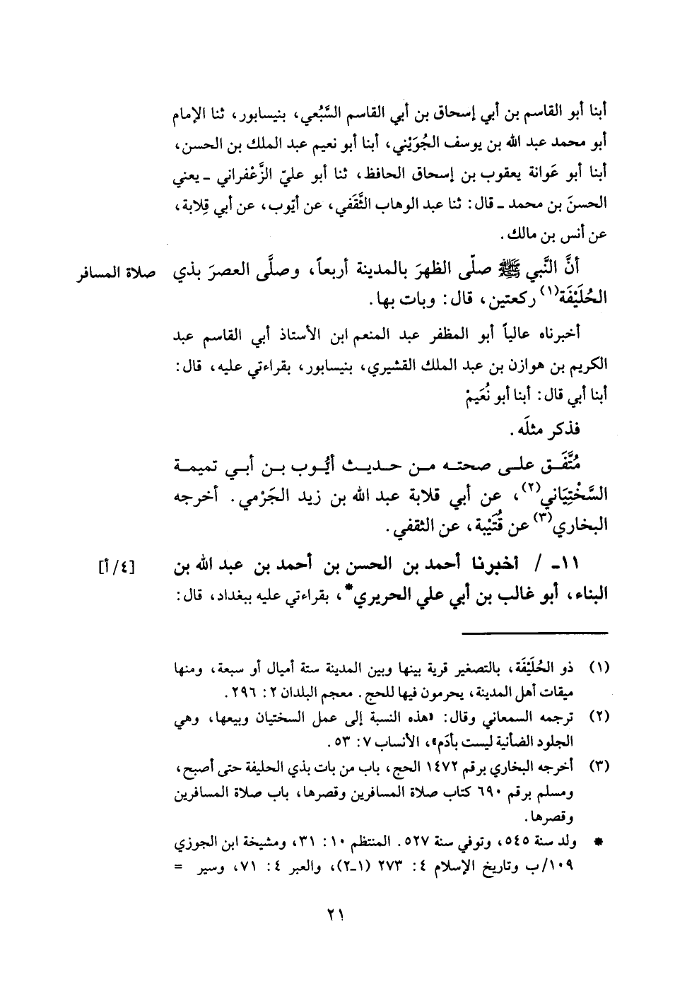 11- أخبرنا أحمد بن الحسن بن أحمد بن عبد الله بن البناء أبو غالب بن أبي علي الحريري بقراءتي عليه ببغداد قال -[22]- ثنا أبو محمد الحسن بن علي بن محمد بن عبد الله الجوهري قراءة عليه وأنا أسمع قال أبنا أبو بكر أحمد بن جعفر بن حمدان بن مالك القطيعي قراءة عليه قال ثنا بشر بن موسى هو ابن صالح بن شيخ بن عميرة أبو علي الأسدي ثنا هوذة بن خليفة ثنا عوف عن سعيد بن أبي الحسن قال كنت عند ابن عباس إذ أتاه رجل فقال إني إنسان إنما معيشتي من صنعة يدي وإني أصنع هذه التصاوير قال ابن عباس لا أحدثك إلا ما سمعت رسول الله صلى الله عليه وسلم سمعت رسول الله صلى الله عليه وسلم يقول من صور صورة فإن الله عز وجل يعذبه يوم القيامة حتى ينفخ فيها وليس بنافخ فيها أبدا قال فربا لها الرجل ربوة شديدة واصفر وجهه قال ويحك إن أبيت إلا أن تصنع فعليك بهذا الشجر وكل شيء ليس فيه روح.