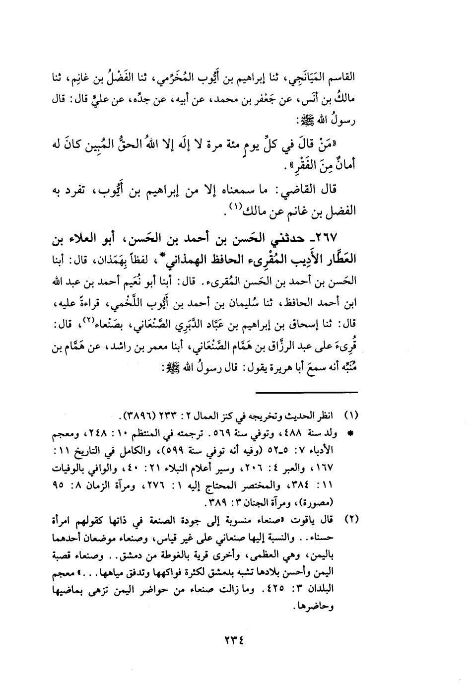 267- حدثني الحسن بن أحمد بن الحسن أبو العلاء بن العطار الأديب المقرئ الحافظ الهمذاني لفظا بهمذان قال أبنا الحسن بن أحمد بن الحسن المقرئ قال أبنا أبو نعيم أحمد بن عبد الله بن أحمد الحافظ ثنا سليمان بن أحمد بن أيوب اللخمي قراءة عليه قال ثنا إسحاق بن إبراهيم بن عباد الدبري الصنعاني بصنعاء قال قرئ على عبد الرزاق بن همام الصنعاني أبنا معمر بن راشد عن همام بن منبه أنه سمع أبا هريرة يقول قال رسول الله صلى الله عليه وسلم -[235]- إنما جعل الإمام ليؤتم به فلا تختلفوا عليه فإذا كبر فكبروا وإذا ركع فاركعوا وإذا قال سمع الله لمن حمده فقولوا اللهم ربنا ولك الحمد وإذا سجد فاسجدوا وإذا صلى جالسا فصلوا جلوسا أجمعين.