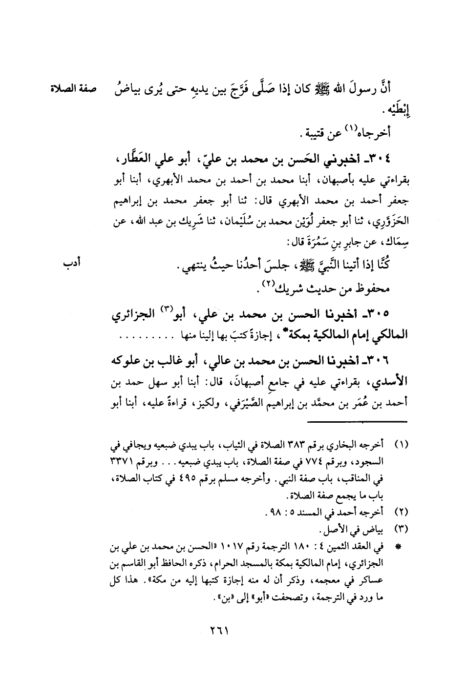 305- أخبرنا الحسن بن محمد بن علي أبو الجزائري المالكي إمام المالكية بمكة إجازة كتب بها إلينا منها.. .. .. ..