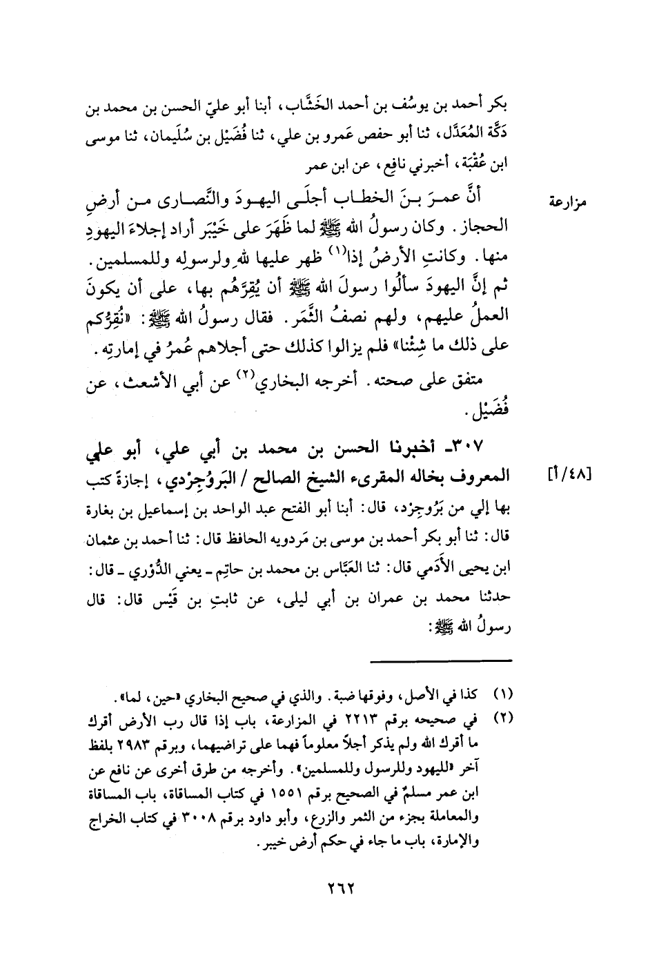 307- أخبرنا الحسن بن محمد بن أبي علي أبو علي المعروف بخاله المقرئ الشيخ الصالح البروجردي إجازة كتب بها إلي من بروجرد قال أبنا أبو الفتح عبد الواحد بن إسماعيل بن بغارة قال ثنا أبو بكر أحمد بن موسى بن مردويه الحافظ قال ثنا أحمد بن عثمان بن يحيى الأدمي قال ثنا العباس بن محمد بن حاتم يعني الدوري قال حدثنا محمد بن عمران بن أبي ليلى عن ثابت بن قيس قال قال رسول الله صلى الله عليه وسلم: -[263]- تسمعون ويسمع منكم ويسمع من الذي يسمع منكم. كذا وقع فيه وقد أسقط من إسناده أربعة. أخبرناه على الصواب أبو بكر محمد بن عبد الباقي ثنا أبو بكر الخطيب ثنا أبو الحسن محمد بن أحمد بن رزق البزاز إملاء ثنا عثمان بن أحمد الدقاق ثنا أحمد بن علي الخزاز ثنا محمد بن عمران بن محمد بن أبي ليلى حدثني أبي حدثني ابن أبي ليلى عن عيسى عن عبد الرحمن بن أبي ليلى عن ثابت بن قيس فذكر مثله وزاد فيه زيادة.