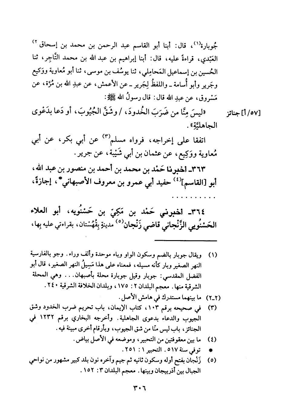 363- أخبرنا حمد بن محمد بن أحمد بن منصور بن عبد الله أبو القاسم حفيد أبي عمرو بن معروف الأصبهاني إجازة.. .. .. ..